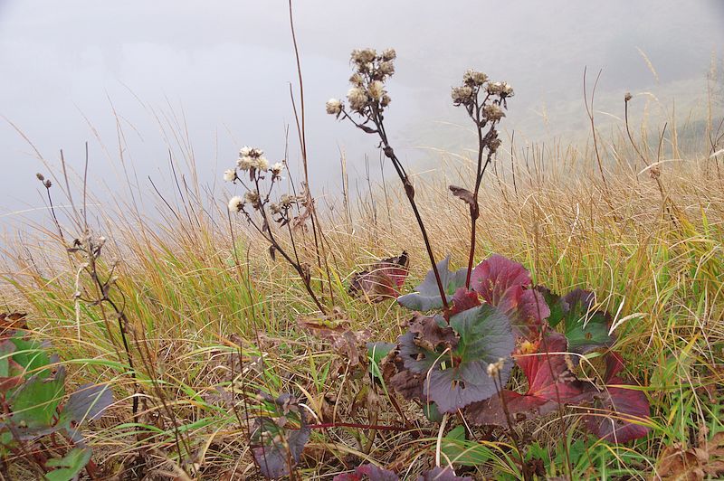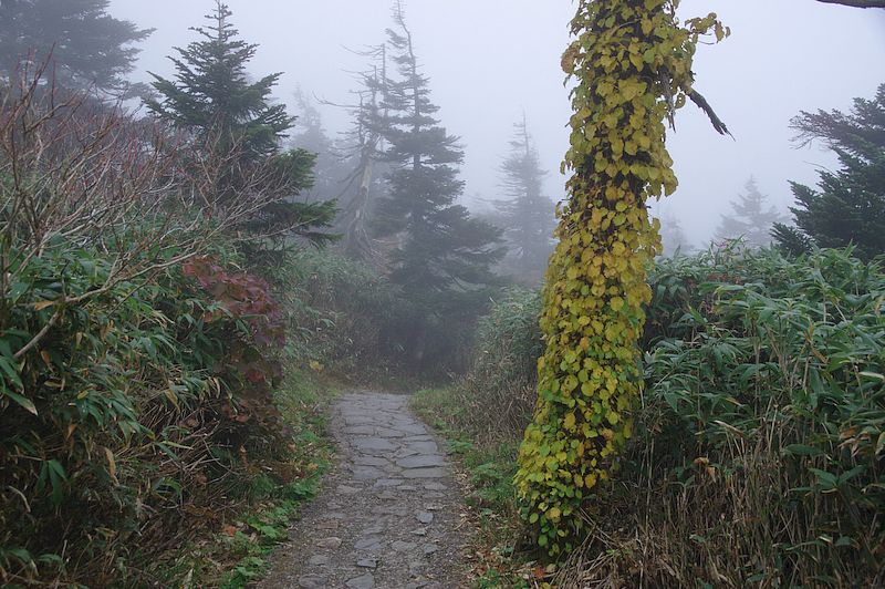 5日の午後、霧がかかりはじめ午前中見えていた山並みが見えなくなっていくなか、山頂散策路を巡回してきました。