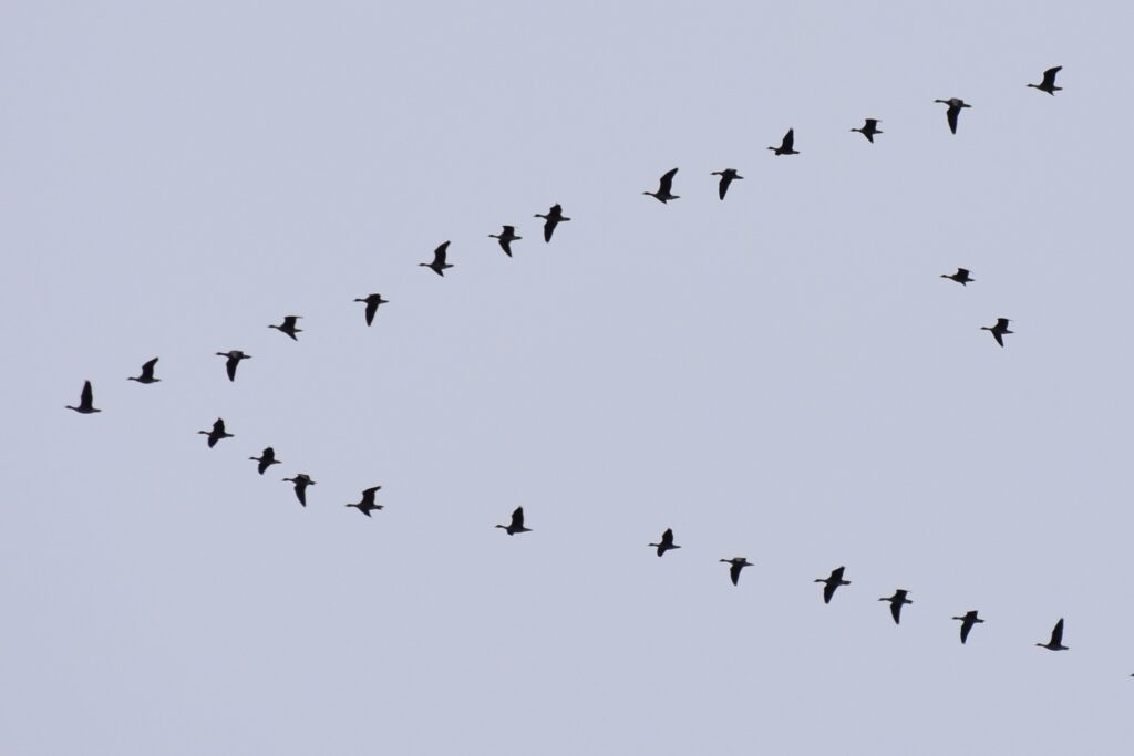 渡り鳥が飛来する季節になりました。鳴き声がするので見上げると、渡り鳥が上空を旋回していました。