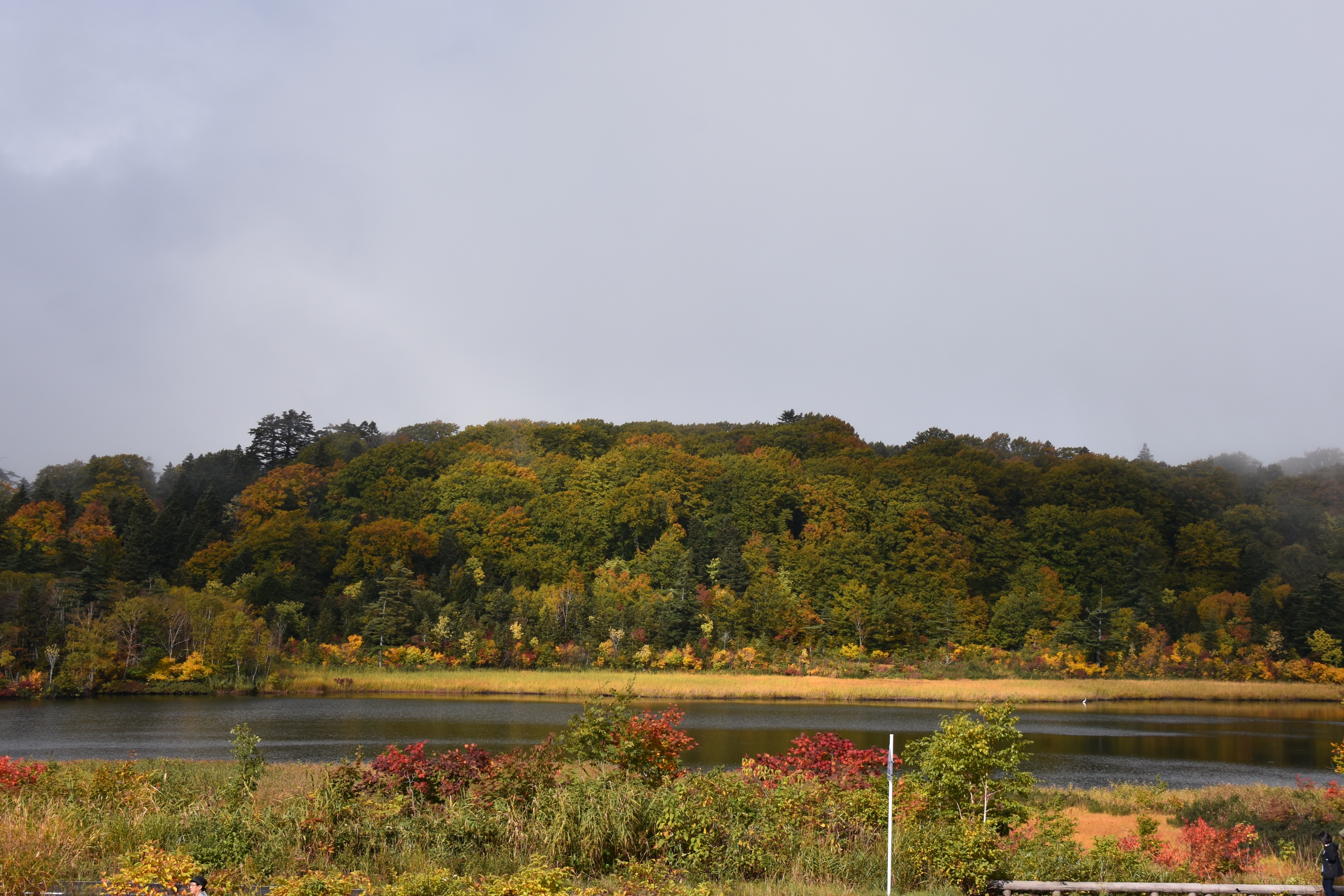 紅葉の進み具合は5割程度ですが、灌木類・小低木類は見頃です。南側湿原の草紅葉も鮮やかです。木々の葉は色付きの変化の過程が見られ、今の時期ならではの楽しみがあります。