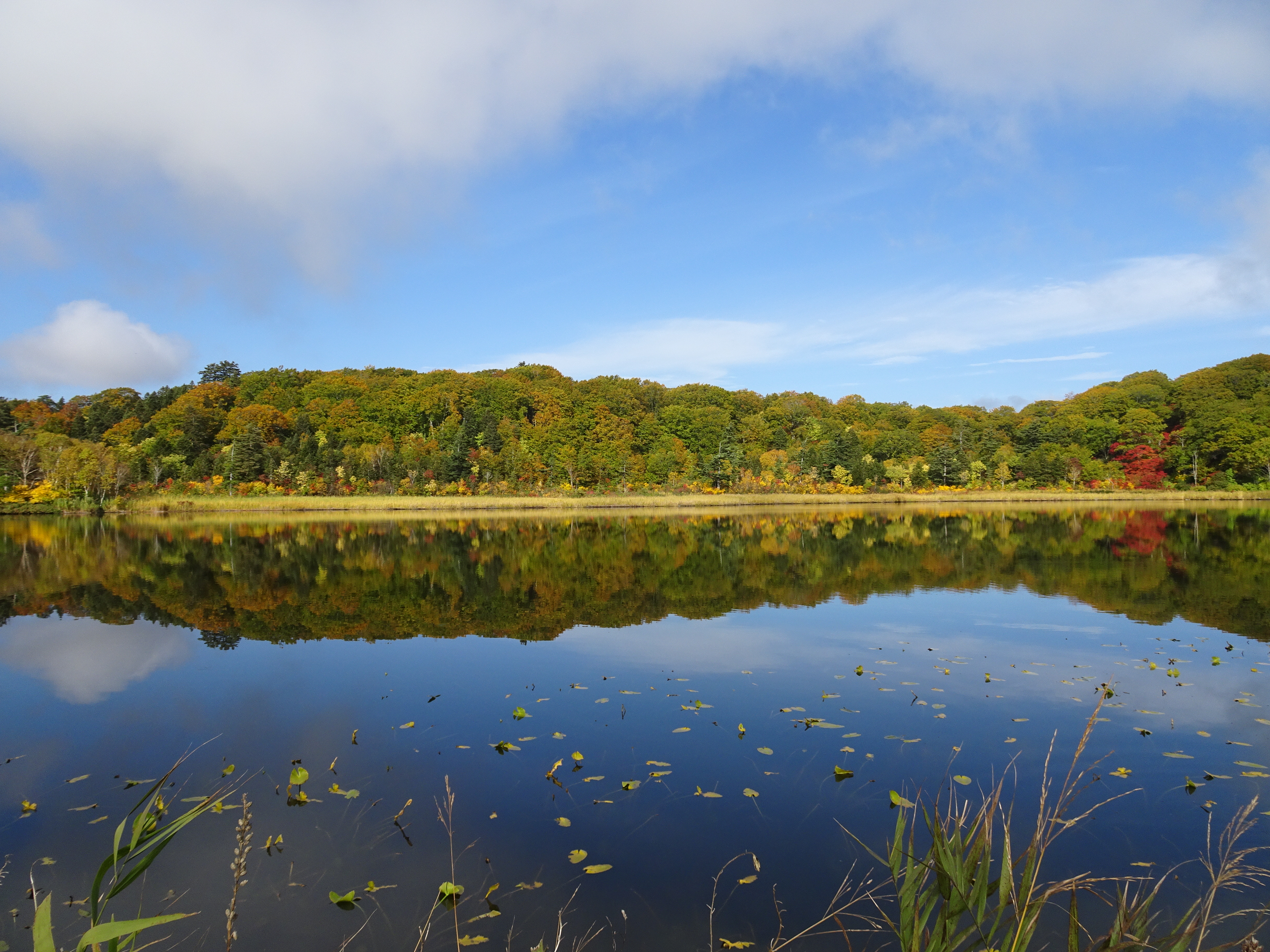 紅葉の進み具合は5割程度ですが、灌木類・小低木類は見頃です。湿原の草紅葉も鮮やかです。木々の葉は色付きの変化の過程が見られ、今の時期ならではの楽しみがあります。
