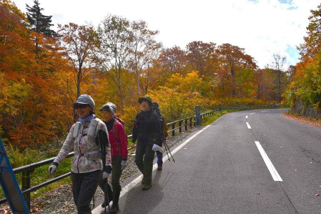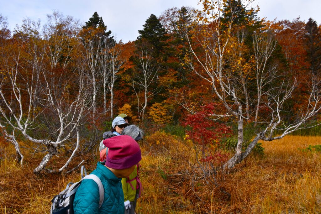 八幡平ビジターセンターのある大沼周辺の木々の色付きはピークを迎えているので、黄葉の中を歩くのを楽しみにしていた参加者の皆さんの期待が、否が応にも高まります。