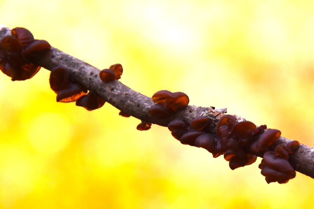 あちらこちらに目を配りながら歩いて見つけたのはサカヅキキクラゲ。