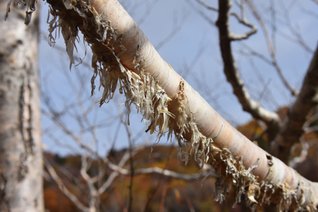 剥がれかけの表皮が風に揺れるダケカンバに、なんだか物寂しさを感じてしまいます。