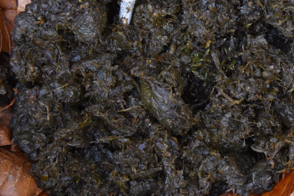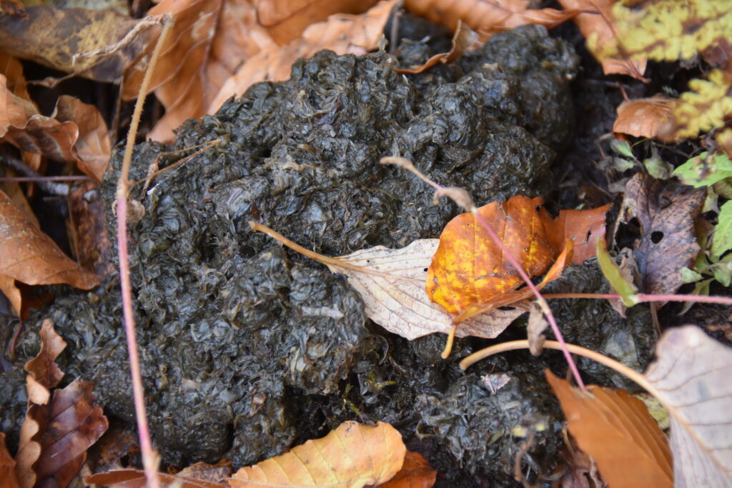 この秋、なかなか見る事の無かったツキノワグマのフンを発見。