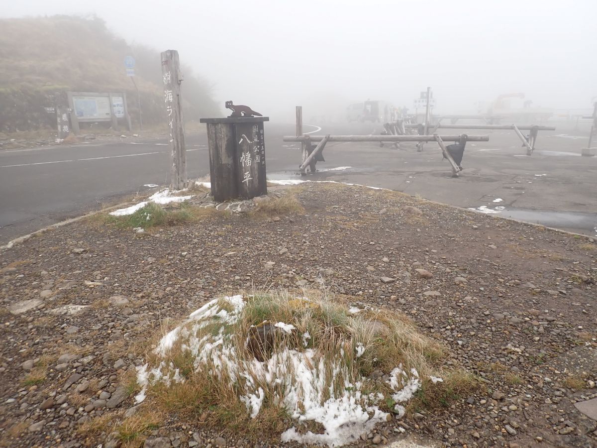 本日の山頂周辺は濃霧です。風はほとんどありませんが、散策の際は防寒対策をしっかりしてお越しください。