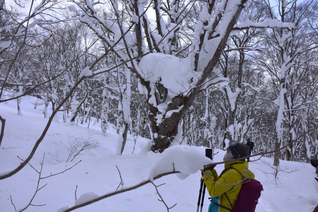 今回のスキーハイク試乗体験は風が強めのお天気の中での開催となりましたが、ブナ林の中に入ると穏やかで風を感じることは殆どありませんでした。