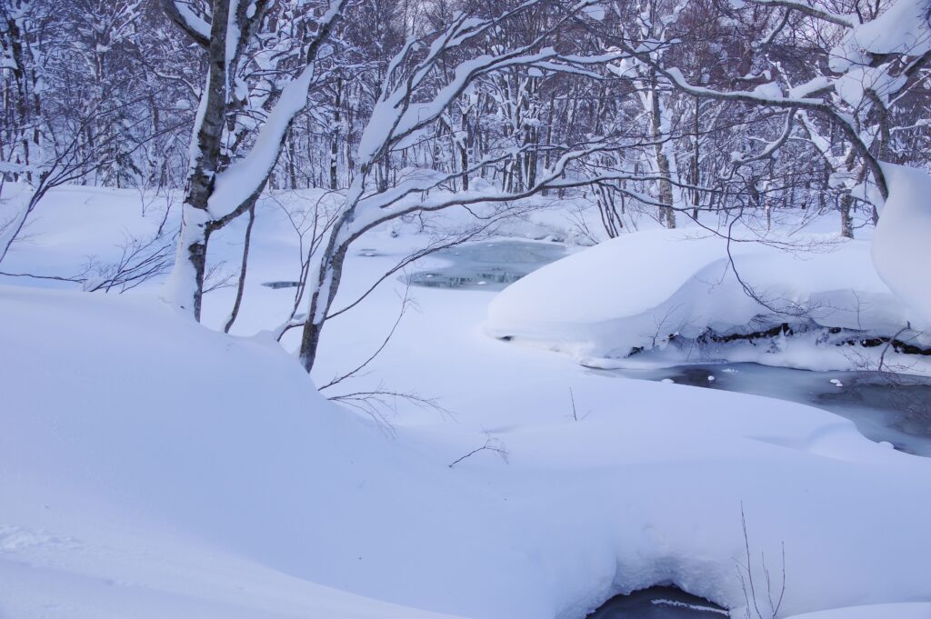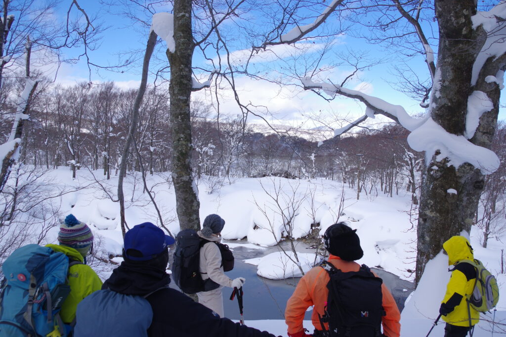 夏場は立ち入ることの出来ない、ビジターセンターとスキー場の間のブナ林の中にある小さな沼を目指します。