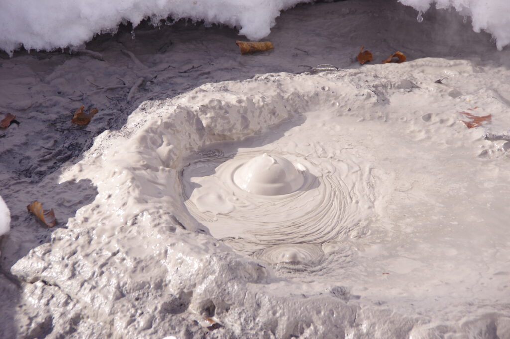 かつては泥火山が噴き出したり、お湯が湧き出して出来上がった沼。