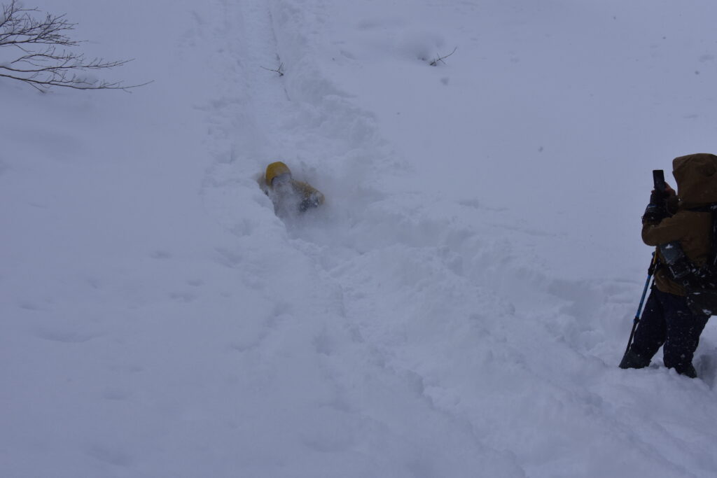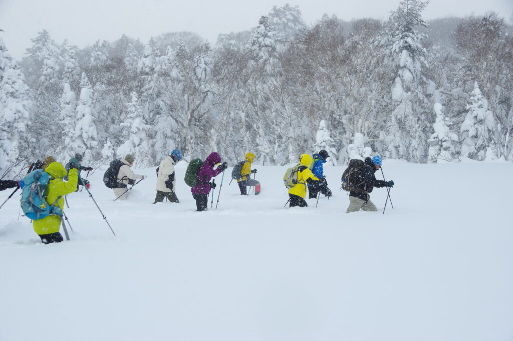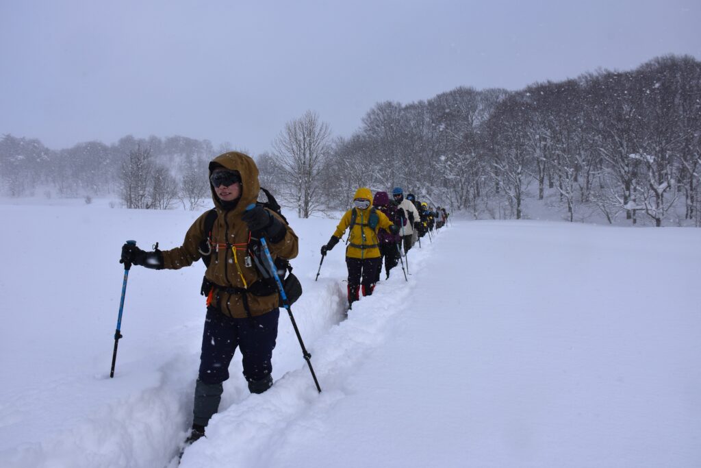 参加者の皆さんにも雪を掻き分けて進むラッセル体験。