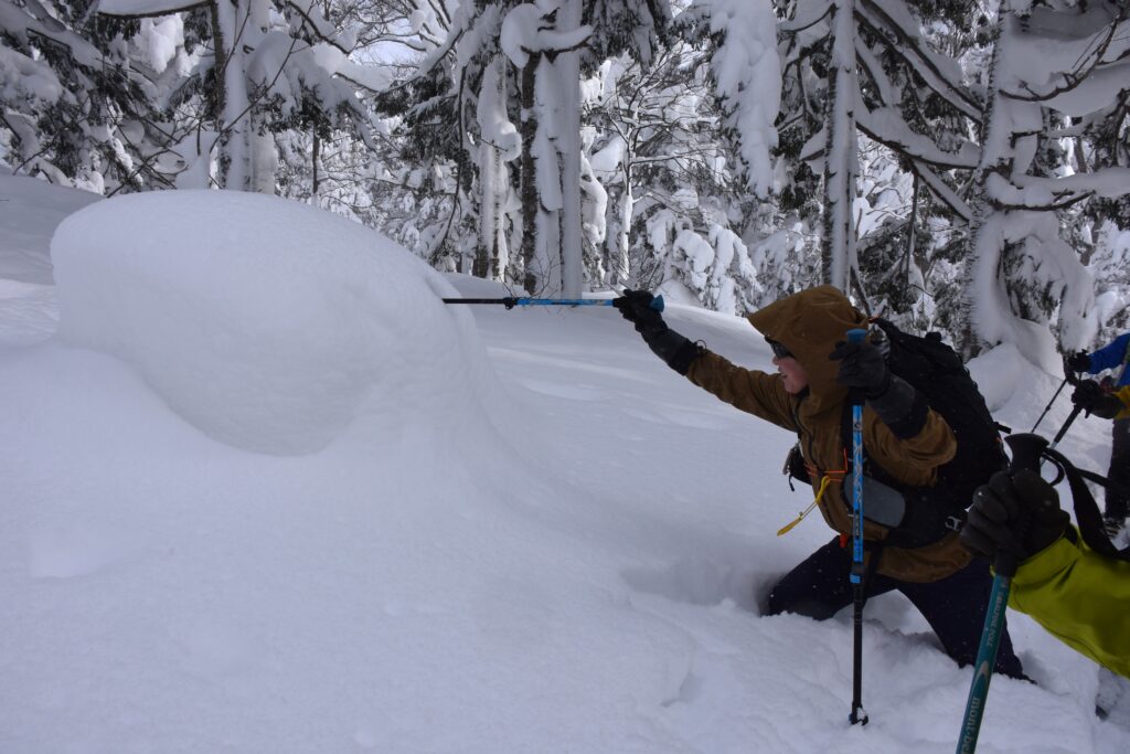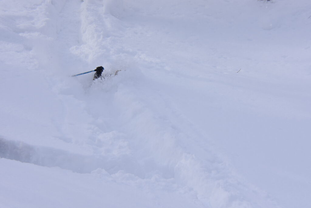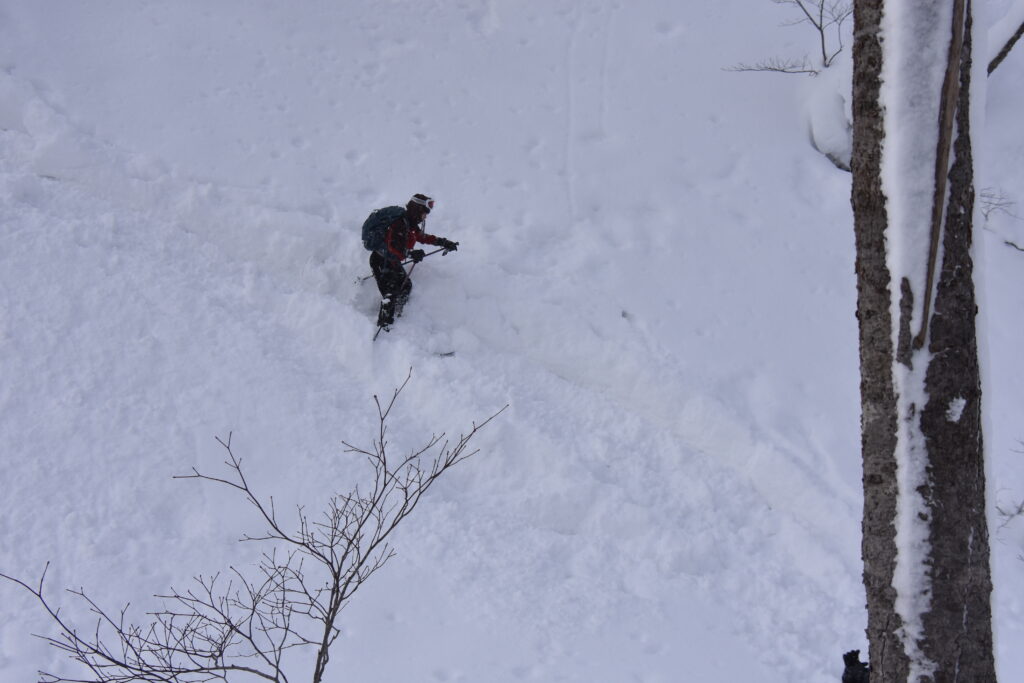 少し急な斜面もトラバースして滑り降りる事が出来ました。