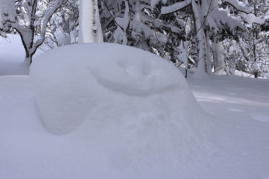 たっぷりと雪を纏った木々の間を進むと、まるで生クリームがかかっているみたい、それともアイシングをしたお菓子?いやいや溶けかけのマシュマロ?柔らかなお餅?…