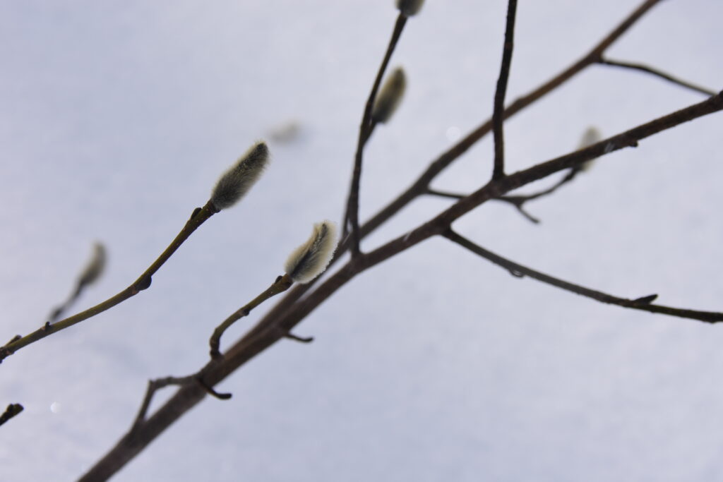 強い風が作り出す風紋と、風に晒されながら遠い春を待つタムシバの冬芽が見守る中を賑やかにゴールへと向かうのでした。