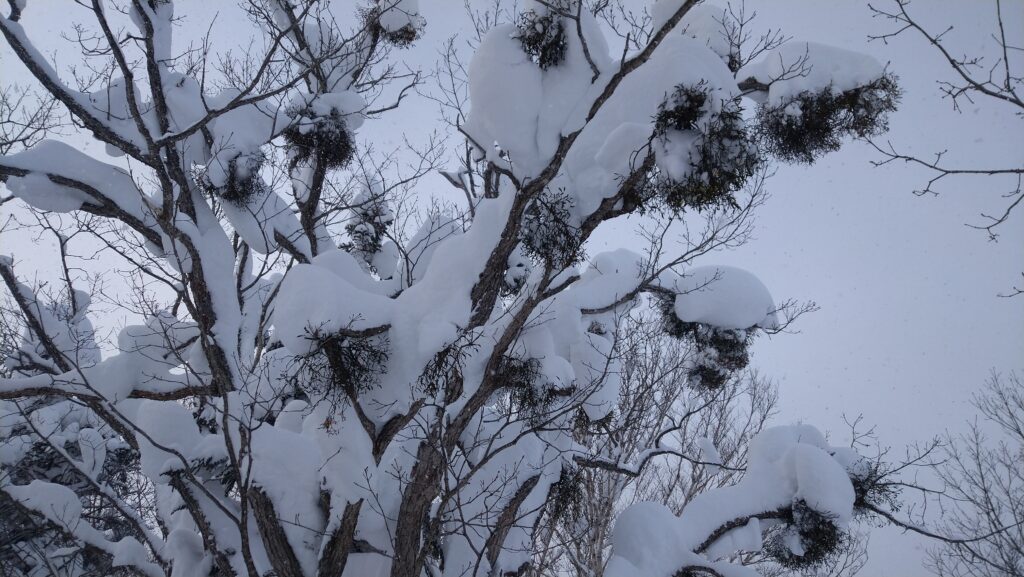 見えてきたのは幾つものヤドリギが着いたミズナラの木。