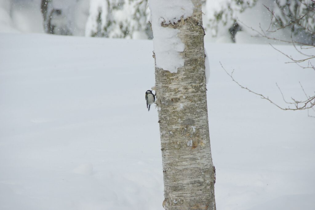 ダケカンバの種をついばんでいたのは、ふわっと膨らませた冬羽で少しだけ大柄に見えるコガラ。